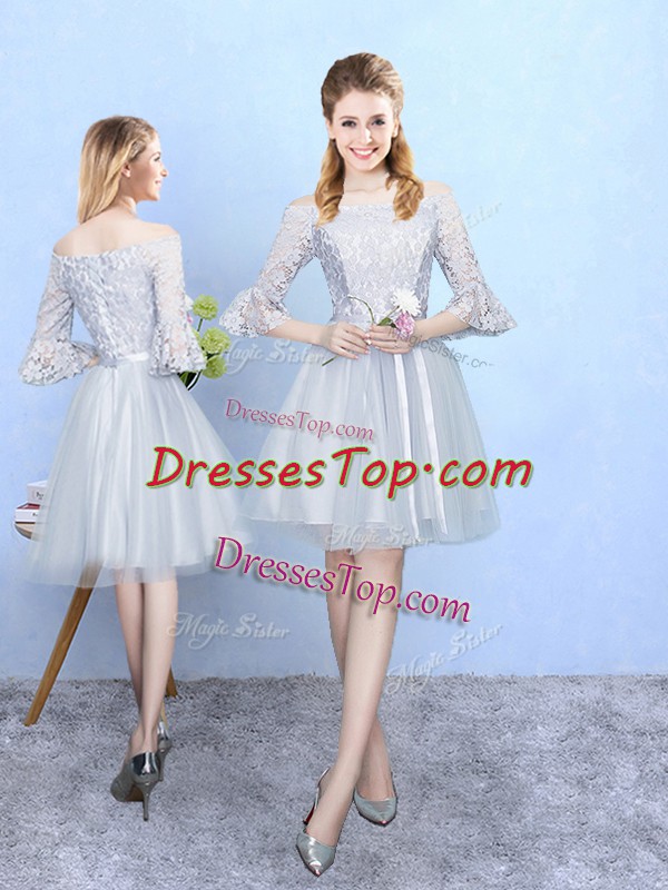 Graceful Tulle Half Sleeves With Train Court Dresses for Sweet 16 and Lace