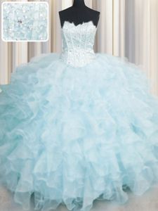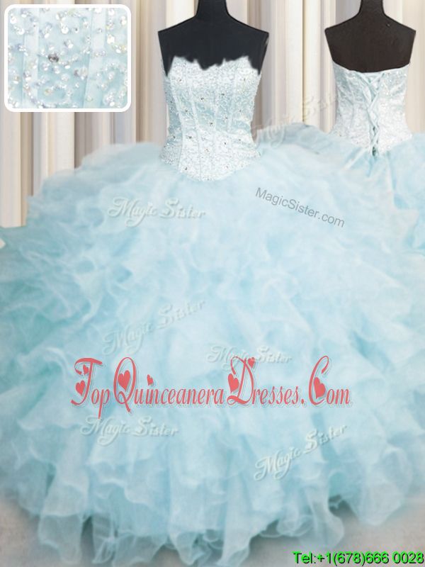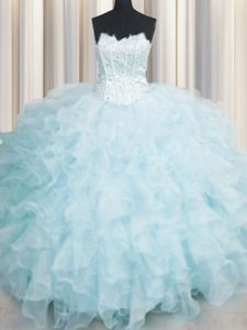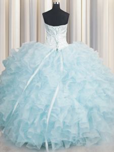 Great Baby Blue Sweet 16 Dress Military Ball and Sweet 16 and Quinceanera and For with Ruffles Scalloped Sleeveless Lace Up