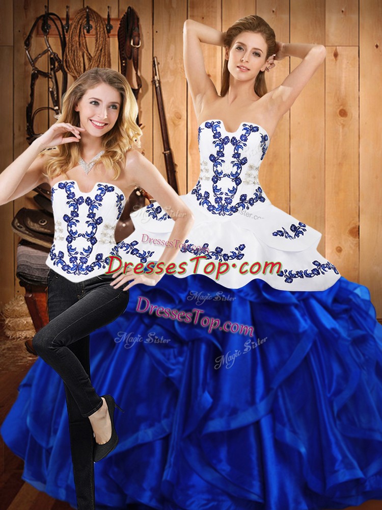 Great Blue Lace Up 15th Birthday Dress Embroidery and Ruffles Sleeveless Floor Length