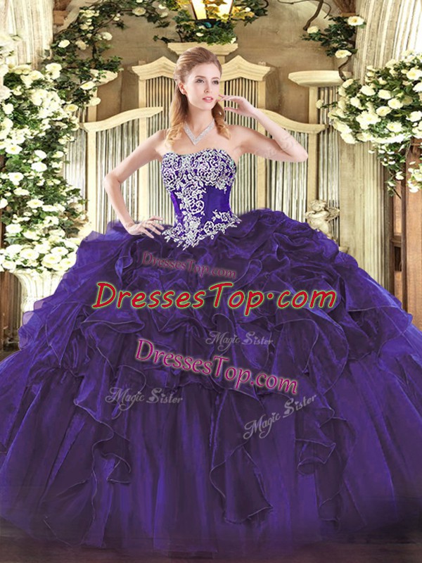 Great Floor Length Ball Gowns Sleeveless Purple Quince Ball Gowns Lace Up