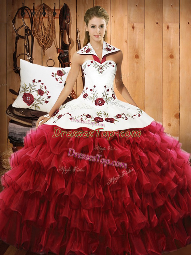 Great Floor Length Ball Gowns Sleeveless Wine Red Quinceanera Gown Lace Up