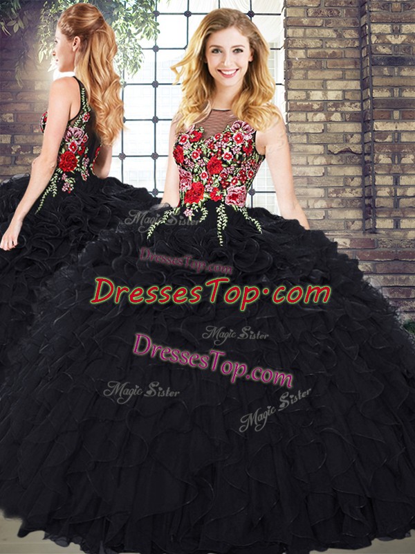 Great Floor Length Black Quinceanera Dress Scoop Sleeveless Zipper