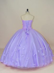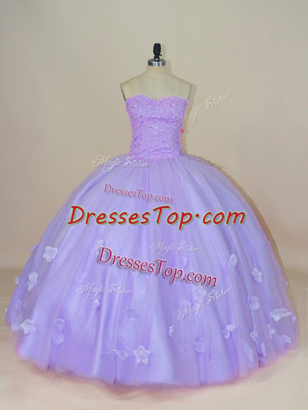Great Lavender Ball Gowns Beading and Hand Made Flower Vestidos de Quinceanera Backless Tulle Sleeveless Floor Length