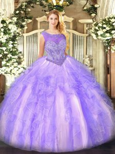 Great Lavender Scoop Neckline Beading and Ruffles Ball Gown Prom Dress Sleeveless Lace Up