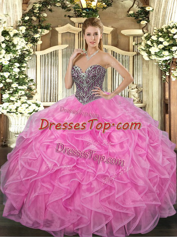 Great Organza Sleeveless Floor Length Quince Ball Gowns and Beading and Ruffles