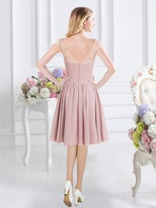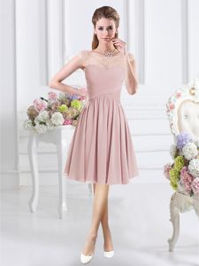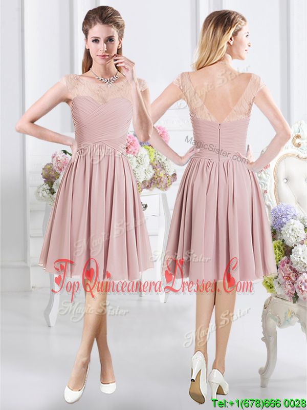 Great Scoop Cap Sleeves Chiffon Quinceanera Dama Dress Lace and Ruching Zipper