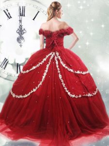 Great Sleeveless Brush Train Appliques and Pick Ups Lace Up Quinceanera Dress