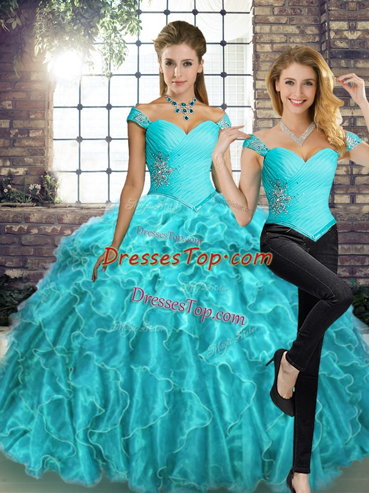 Great Sleeveless Brush Train Lace Up Beading and Ruffles Sweet 16 Quinceanera Dress