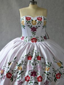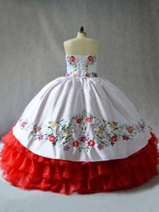 Great White And Red Sweetheart Neckline Embroidery and Ruffled Layers 15 Quinceanera Dress Sleeveless Lace Up