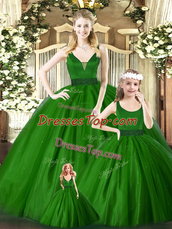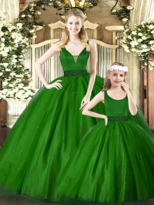 Green 15th Birthday Dress Military Ball and Sweet 16 and Quinceanera with Embroidery V-neck Sleeveless Zipper