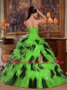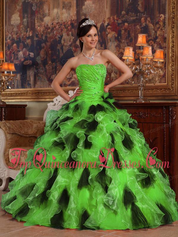 Green and Black Ball Gown Strapless Floor-length Organza Fashionable Quinceanera Dress