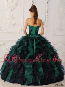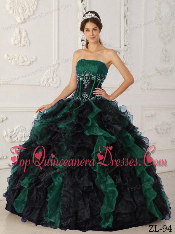 Green and Black Ball Gown Strapless Floor-length Taffeta and Organza Beading Quinceanera Dress