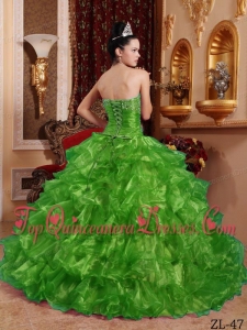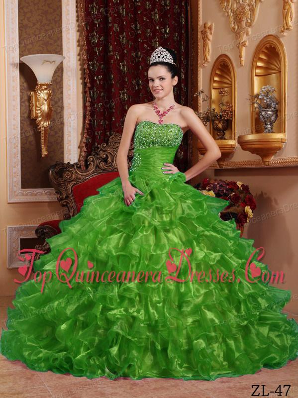 Green Ball Gown Strapless Floor-length Organza Beading Fashionable Quinceanera Dress