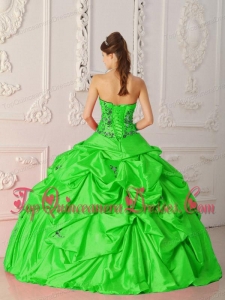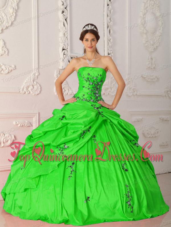 Green Ball Gown Strapless Floor-length Taffeta Appliques Perfect Quinceanera Dress