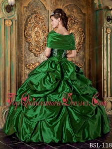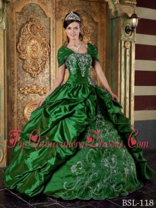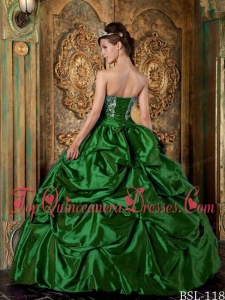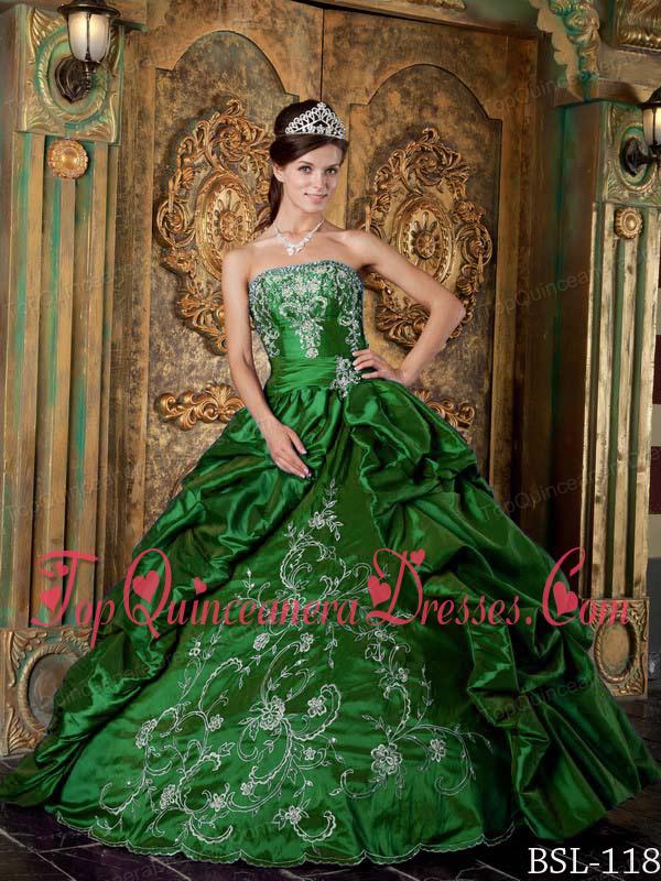 Green Ball Gown Strapless Floor-length Taffeta Embroidery Vestidos de Quinceanera