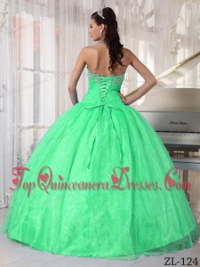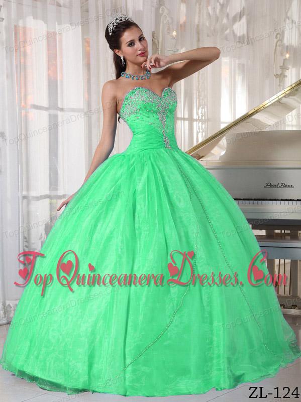 Green Ball Gown Sweetheart Floor-length Taffeta and Organza Appliques Quinceanera Dress