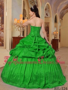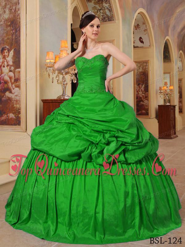 Green Ball Gown Sweetheart Floor-length Taffeta Beading Cheap Quinceanera Dress