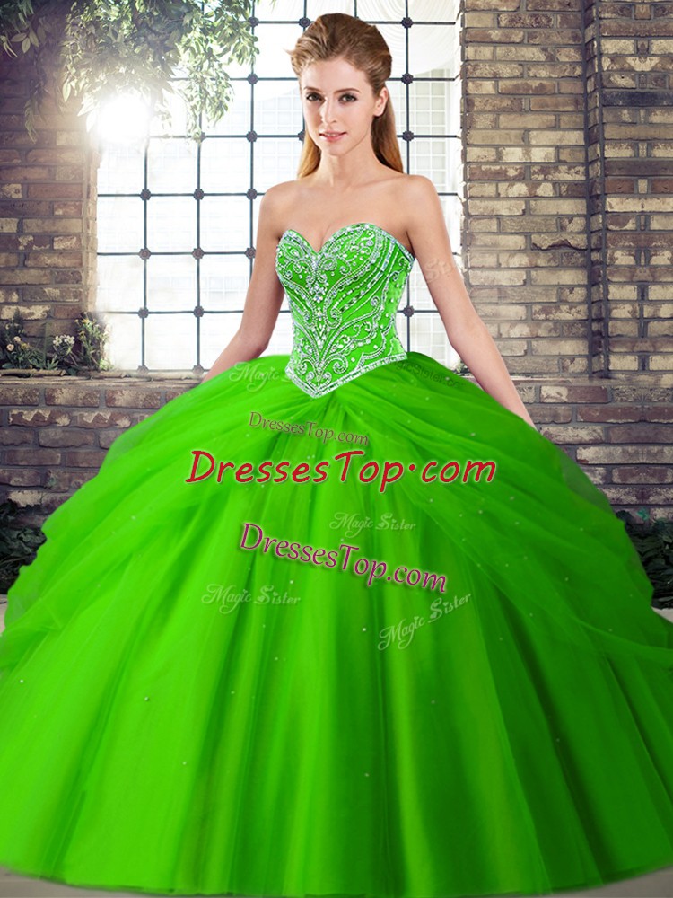 Green Ball Gowns Beading and Pick Ups Quinceanera Gown Lace Up Tulle Sleeveless