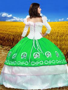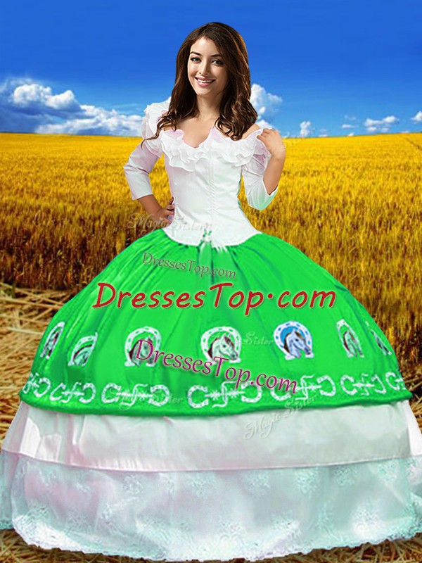 Green Ball Gowns Taffeta Off The Shoulder 3 4 Length Sleeve Embroidery Floor Length Lace Up Ball Gown Prom Dress