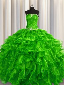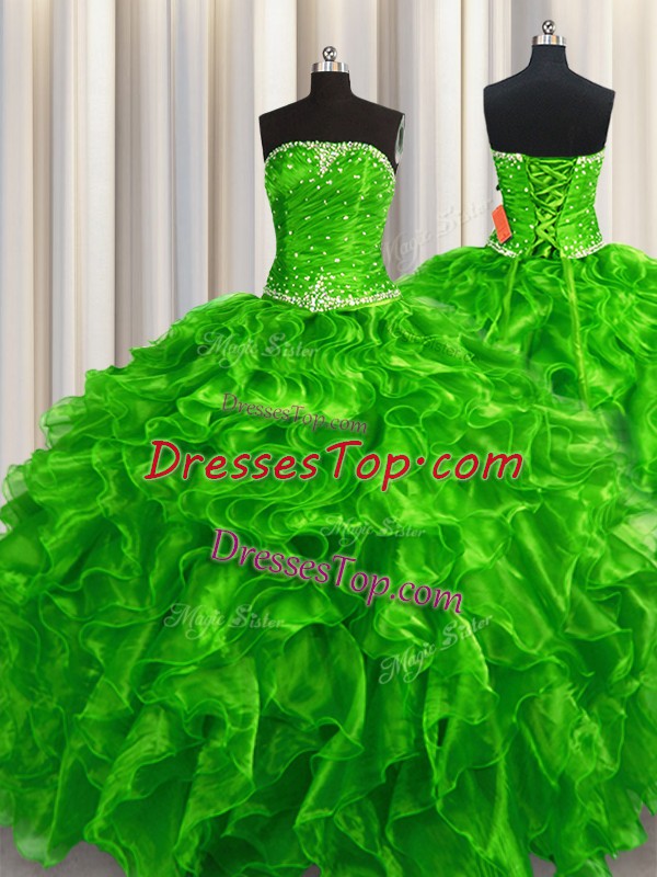 Green Lace Up 15 Quinceanera Dress Beading and Ruffles Sleeveless Floor Length