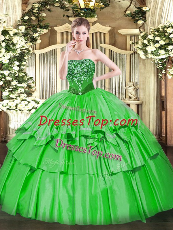 Green Lace Up Quinceanera Gown Beading and Ruffled Layers Sleeveless Floor Length