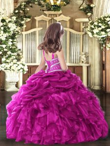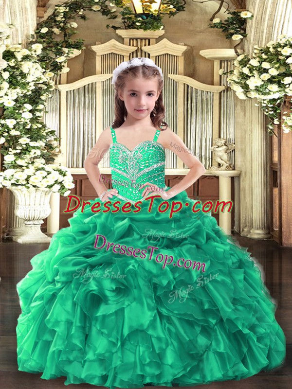Green Lace Up Straps Beading and Ruffles Girls Pageant Dresses Organza Sleeveless