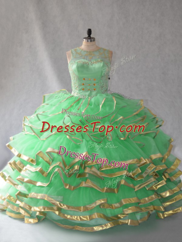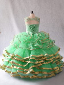 Green Lace Up Sweet 16 Dress Beading and Ruffles Sleeveless Floor Length