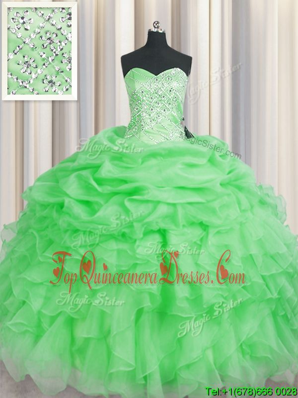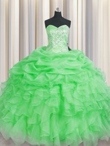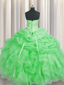 Green Lace Up Sweetheart Beading and Ruffles Quinceanera Dresses Organza Sleeveless