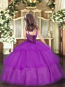Green Organza Lace Up Straps Sleeveless Floor Length Kids Formal Wear Beading and Ruffled Layers