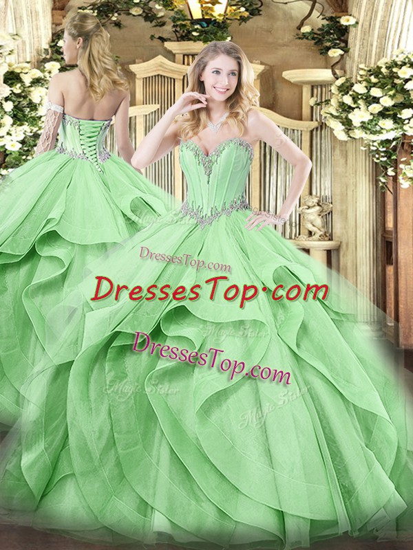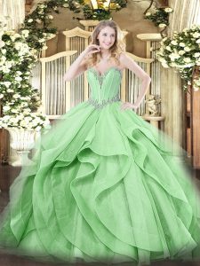 Green Sleeveless Beading and Ruffles Floor Length 15 Quinceanera Dress