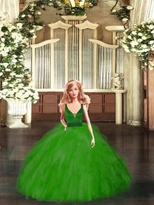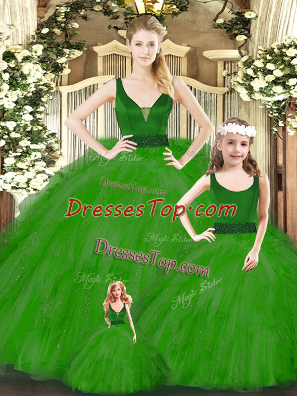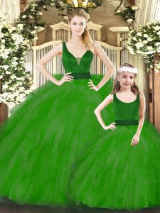 Green Sleeveless Beading and Ruffles Floor Length Ball Gown Prom Dress