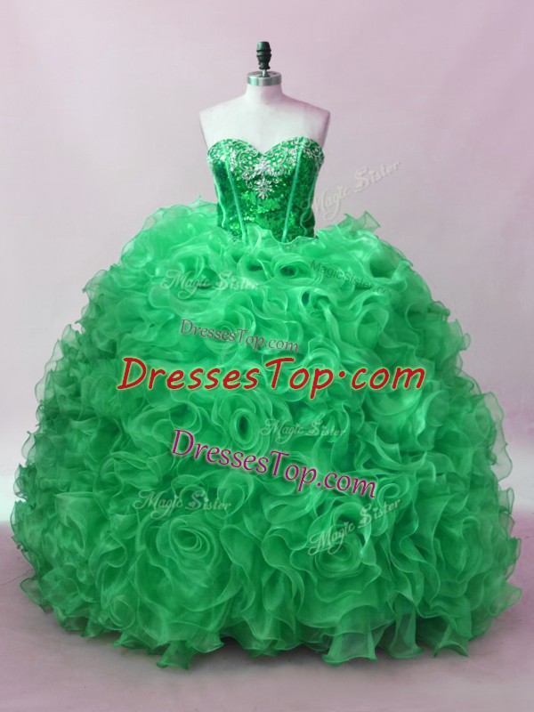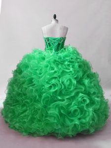 Green Sleeveless Fabric With Rolling Flowers Lace Up 15 Quinceanera Dress for Sweet 16 and Quinceanera