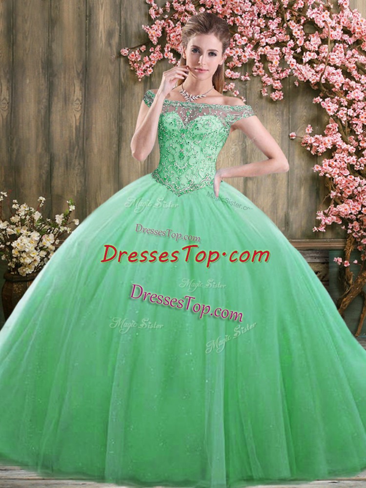 Green Sleeveless Floor Length Beading Lace Up Vestidos de Quinceanera