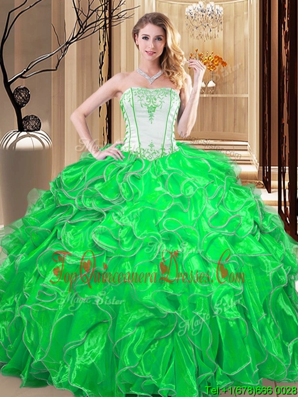 Green Sleeveless Organza Lace Up Sweet 16 Quinceanera Dress for Military Ball and Sweet 16 and Quinceanera