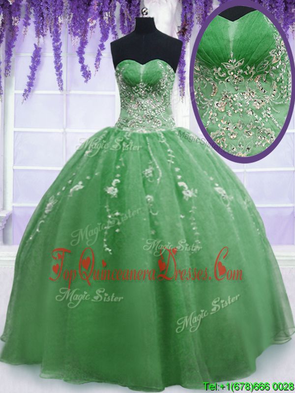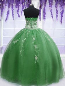 Green Sleeveless Organza Zipper 15th Birthday Dress for Military Ball and Sweet 16 and Quinceanera