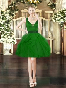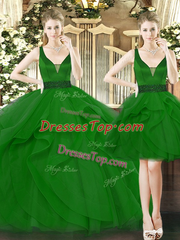 Green Sleeveless Tulle Lace Up Quince Ball Gowns for Military Ball and Sweet 16 and Quinceanera