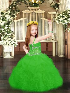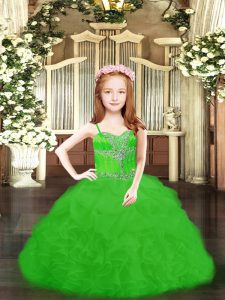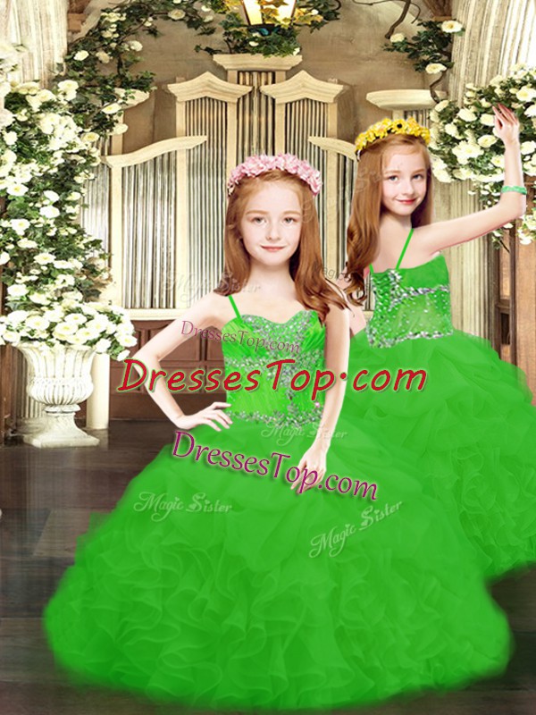 Green Spaghetti Straps Lace Up Beading and Ruffles and Pick Ups Kids Formal Wear Sleeveless