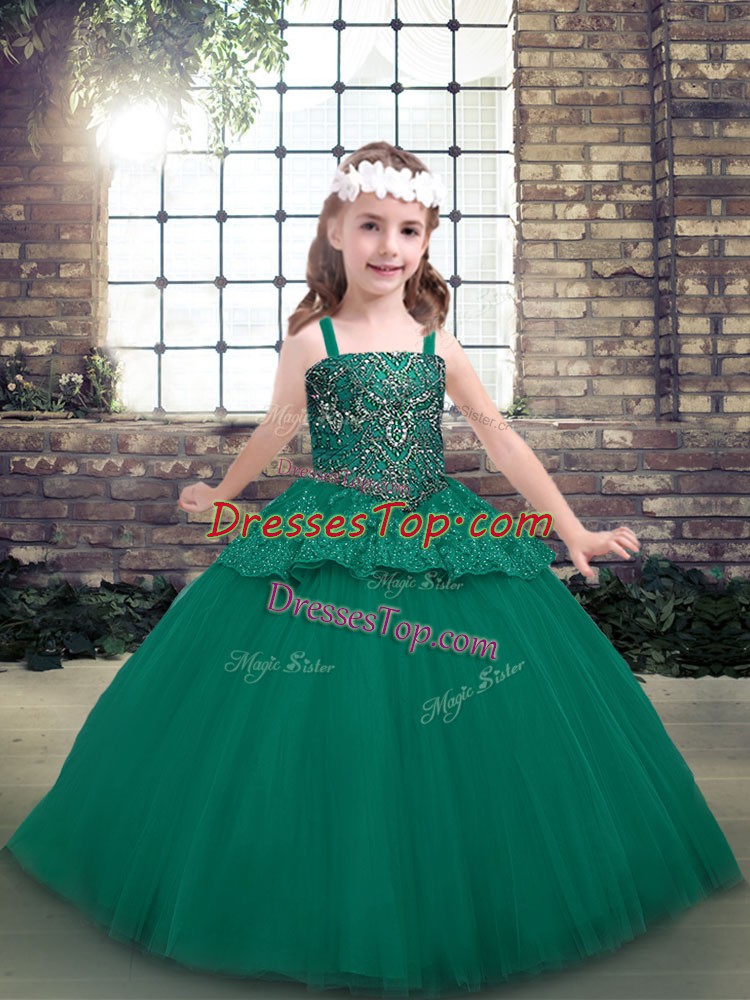 Green Straps Lace Up Beading Girls Pageant Dresses Sleeveless
