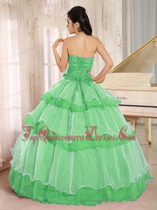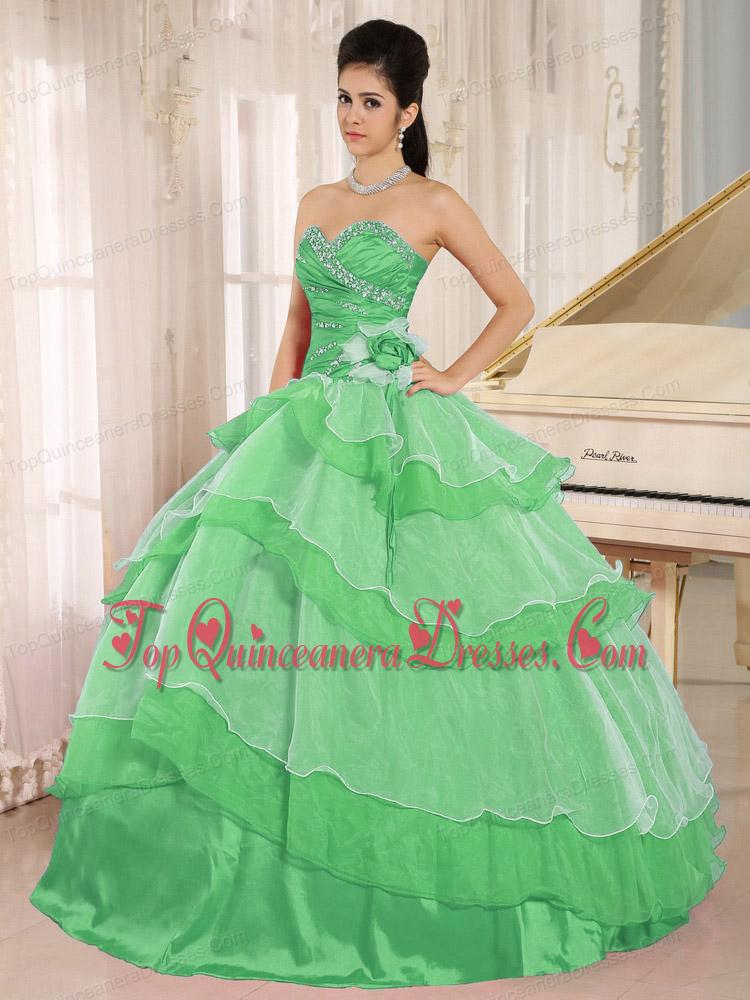 Green Sweetheart Beaded Decorate and Ruched Bodice Ruffled Layeres Quinceanera Dress In 2013
