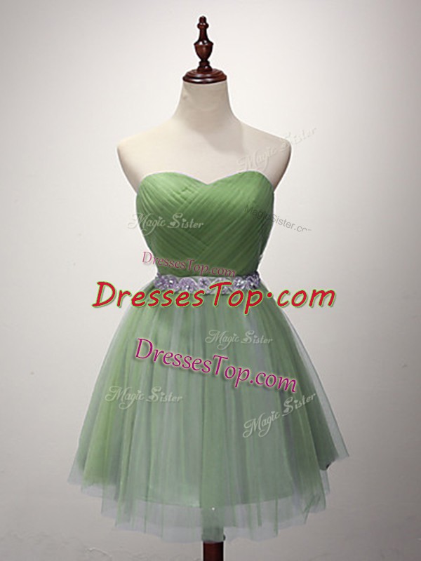 Green Sweetheart Lace Up Beading and Ruching Quinceanera Court of Honor Dress Sleeveless