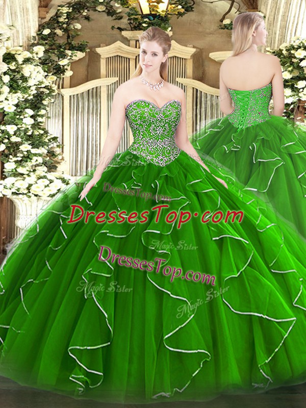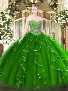 Green Sweetheart Neckline Beading and Ruffles Sweet 16 Dresses Sleeveless Lace Up