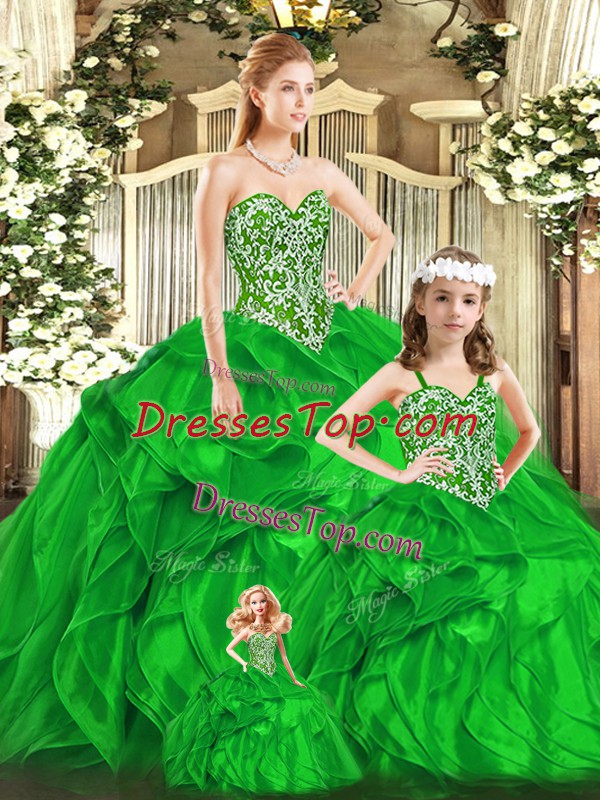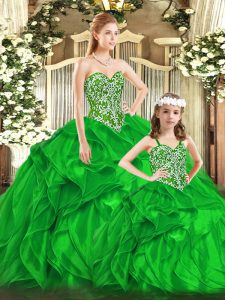Green Sweetheart Neckline Beading and Ruffles Vestidos de Quinceanera Sleeveless Lace Up