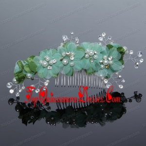 Green Tulle Rhinestone and Imitation Pearls 2014 Hair Combs