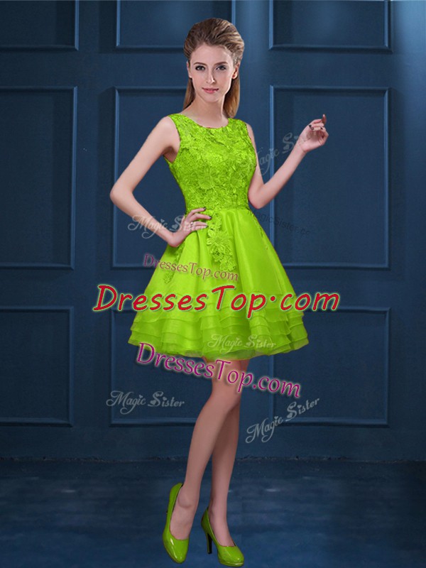 Green Tulle Zipper Scoop Sleeveless Knee Length Quinceanera Dama Dress Lace and Ruffled Layers