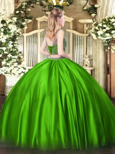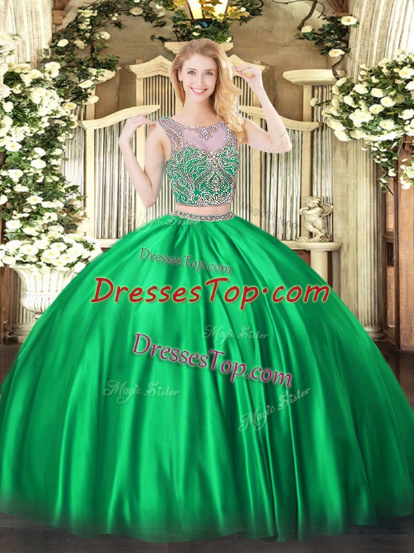 Green Two Pieces Satin Scoop Sleeveless Beading Floor Length Lace Up Vestidos de Quinceanera