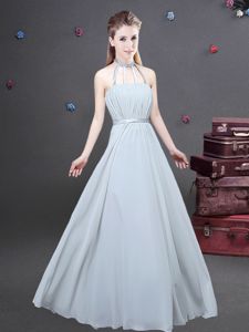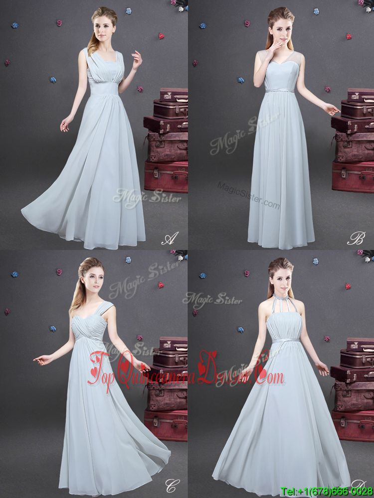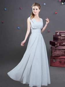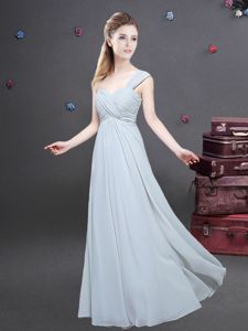 Grey Empire V-neck Sleeveless Chiffon Floor Length Zipper Ruching Quinceanera Court of Honor Dress