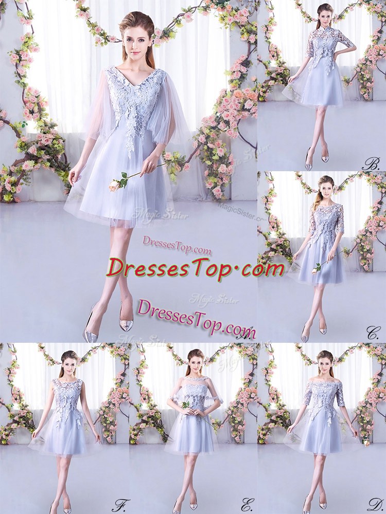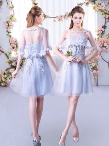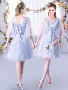 Grey Sleeveless Mini Length Lace Lace Up Quinceanera Court Dresses