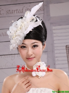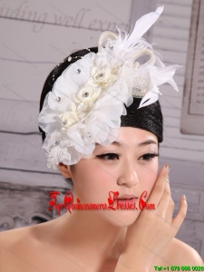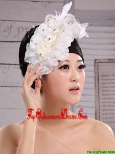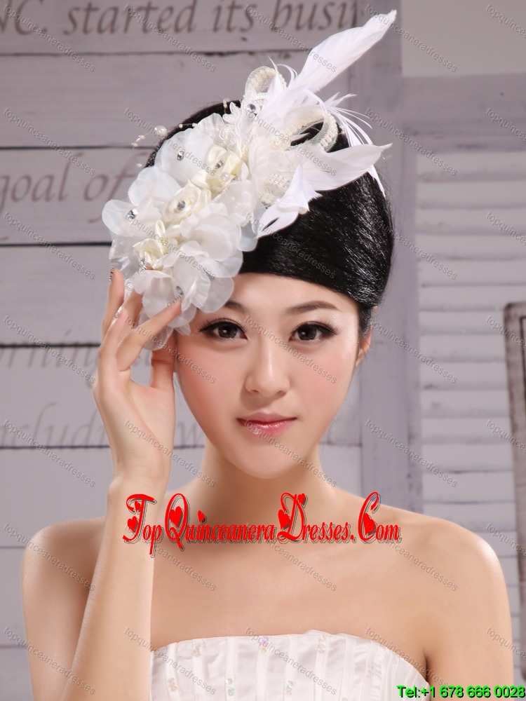 Hair Accessories For Brides Bud Silk Yarn Feather With Pearls and Beading Embellishment
