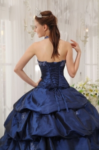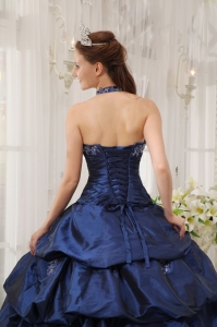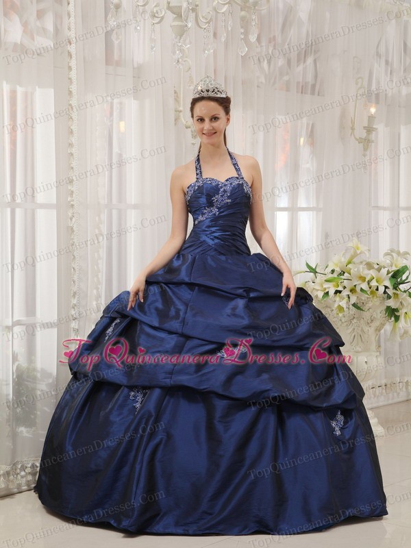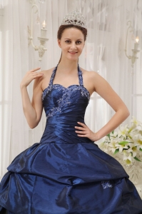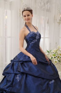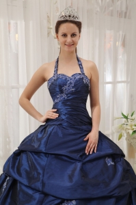 Halter Appliques Ball Gown Quinceanera Dresses Navy Blue