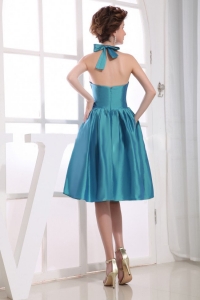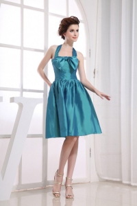 Halter Neckline Teal Bowknot Knee-length Dama Dresses
